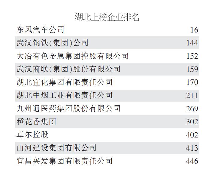武漢6企業(yè)上榜中國500強(qiáng) 4家名次上升