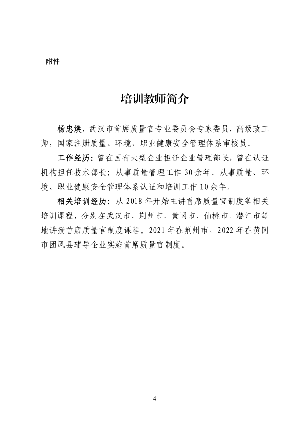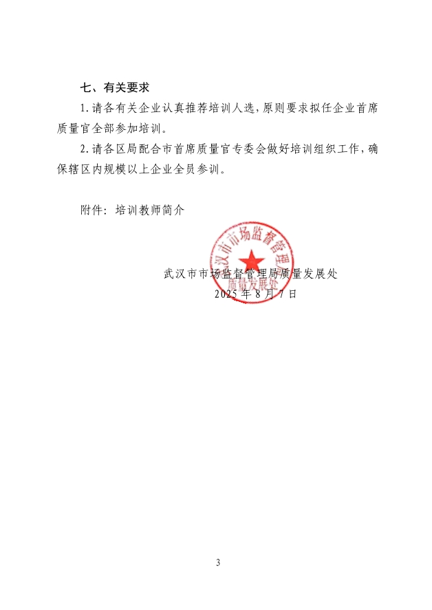 關(guān)于舉辦武漢市企業(yè)首席質(zhì)量官培訓(xùn)的通知(第十期)